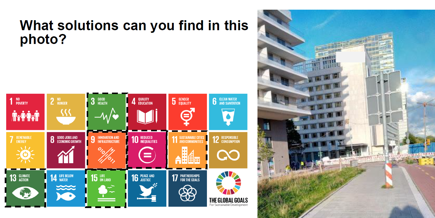 “We asked them to go out in their neighbourhoods and take a picture of either a problem that they find interesting and use the 17 UNSDGs to help them reach a solution. It may have to do with clean air, or clean water, or reducing inequalities etc.”